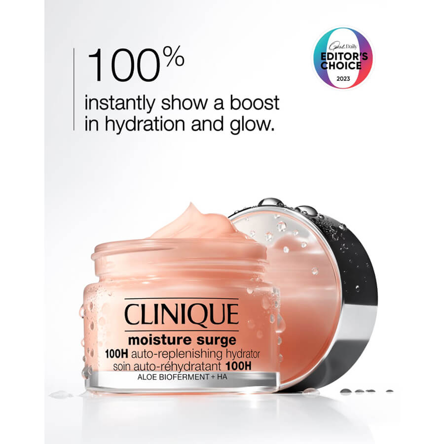قابلیت آبرسانی 100 ساعته و بافت ژل کرمی و فرمولاسیون بدون روغن مناسب برای احیا و رفع خشکی پوست می باشد. این آبرسان ژلی کلینیک یک آبرسان پیشرفته Clinique دارای عملکرد دوگانه با فناوری Auto-Replenishing است و به عنوان یک منبع آب داخلی برای سلول های پوست ایجاد میکند تا رطوبترسانی به طور مستمر به پوست انتقال داده شود و سپس این رطوبت را در بافت پوست قفل میکند تا ظاهر درخشان و سالم آن حفظ شود. فناوری Auto-Replenishing موجود در ژل آبرسان 100 ساعته مویسچر سرج کلینیک ، با بهره گیری از عصاره آلوئهورا و کافئین سیستم آبرسانی پوست را تحرک میکند و با رطوبت رسانی فوری به میزان 174% در بافت پوست هیدراتاسیون عمیقی برای پوست به وجود می آورد به طوری که حتی بعد از شستن پوست هم، تا 100 ساعت رطوبت را در پوست باقی نگه میدارد.